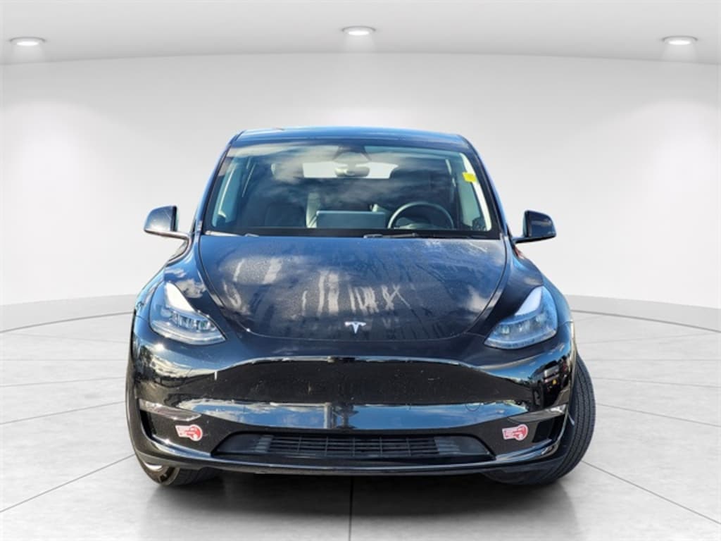 Clean CARFAX. CARFAX One-Owner. Odometer is 3369 miles below market average! Model Y Long Range, Electric Motor, 1-Speed Automatic, AWD, Solid Black, Black Leather, 14 Speakers, 5 Seat Interior, Air Conditioning, Alloy wheels, Auto tilt-away steering wheel, Auto-dimming Rear-View mirror, Brake assist, Compass, Driver door bin, Electronic Stability Control, Exterior Parking Camera Rear, Front anti-roll bar, Knee airbag, Lane Departure Warning System, Low tire pressure warning, Navigation System, Occupant sensing airbag, Overhead airbag, Radio: Premium Audio System w/13 Speakers, Traction control. 122/112 City/Highway MPG